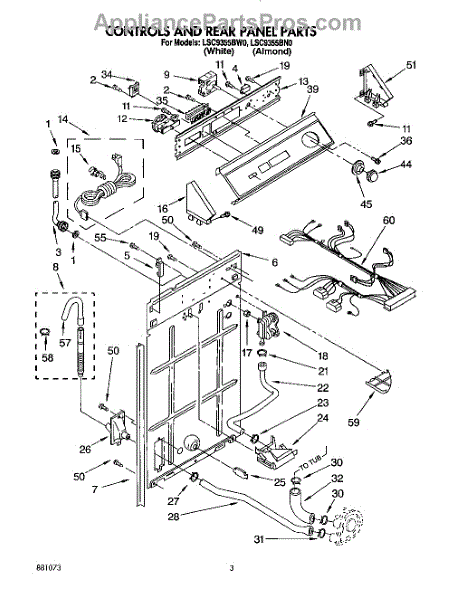 Parts for Whirlpool LSC9355BW0: 02 - Controls And Rear Panel Parts