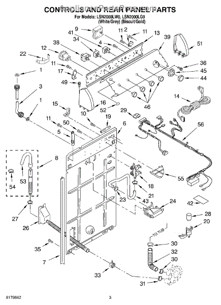 Parts for Whirlpool LSN2000LW0: 02 - Controls And Rear Panel Parts