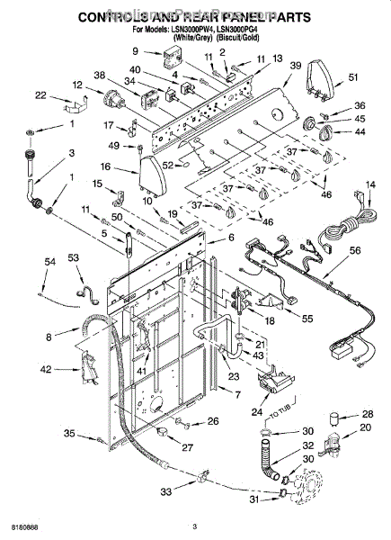 Parts for Whirlpool LSN3000PG4: 02 - Controls And Rear Panel Parts