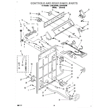 This rear panel support is the structural bracket that secures the appliance's rear cover/backguard in place. Replacing a worn or broken support restores proper alignment, helps protect internal components, and reduces vibration noise.