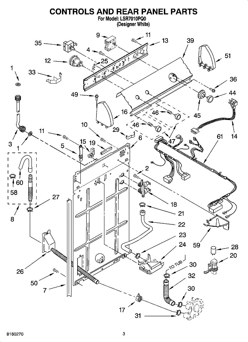 Replaces the vacuum break inlet hose connecting the water inlet to your washer tub. Needed when original hose is cracked, burst, leaking, or damaged.