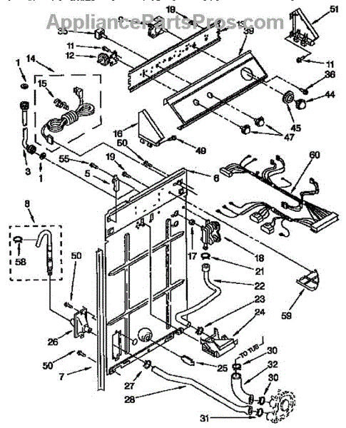 This internal pump-to-drain hose routes water from the drain pump to the outlet, helping prevent leaks and ensuring proper draining. Replace a cracked or clogged hose to restore reliable, mess-free operation.