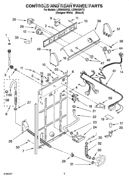 Replaces the vacuum break inlet hose connecting the water inlet to your washer tub. Needed when original hose is cracked, burst, leaking, or damaged.
