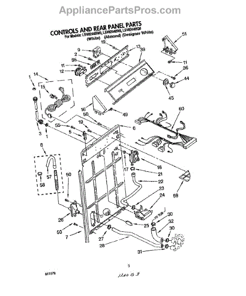 Parts for Whirlpool LSV8244BW0: 02 - Controls And Rear Panel Parts