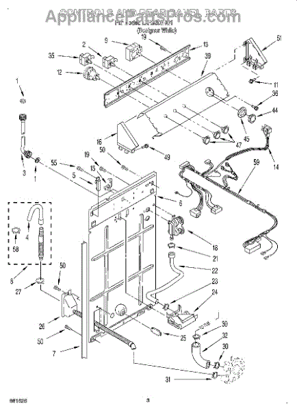 This rear panel support is the structural bracket that secures the appliance's rear cover/backguard in place. Replacing a worn or broken support restores proper alignment, helps protect internal components, and reduces vibration noise.