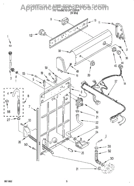 This rear panel support is the structural bracket that secures the appliance's rear cover/backguard in place. Replacing a worn or broken support restores proper alignment, helps protect internal components, and reduces vibration noise.