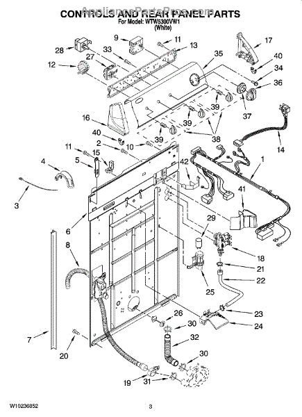 This rear panel support is the structural bracket that secures the appliance's rear cover/backguard in place. Replacing a worn or broken support restores proper alignment, helps protect internal components, and reduces vibration noise.