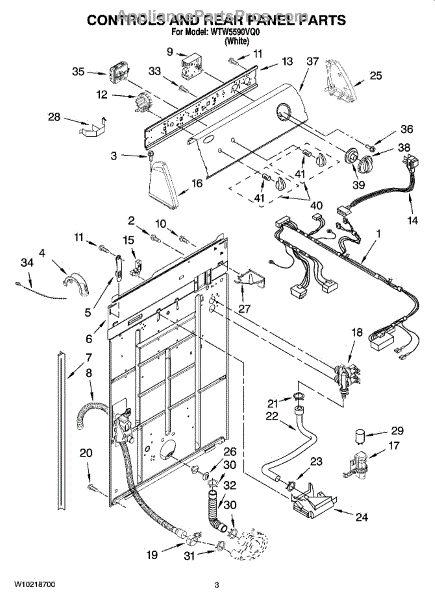 This rear panel support is the structural bracket that secures the appliance's rear cover/backguard in place. Replacing a worn or broken support restores proper alignment, helps protect internal components, and reduces vibration noise.
