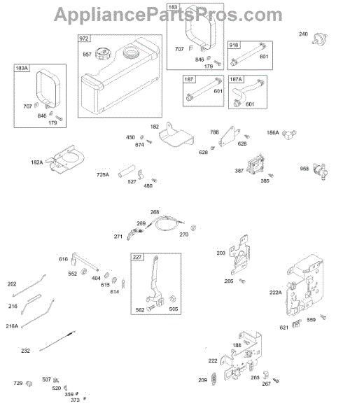 Parts for Briggs & Stratton 28M707-0114-01: Controls, Springs, Fuel Tank, Hoses, Pump Parts