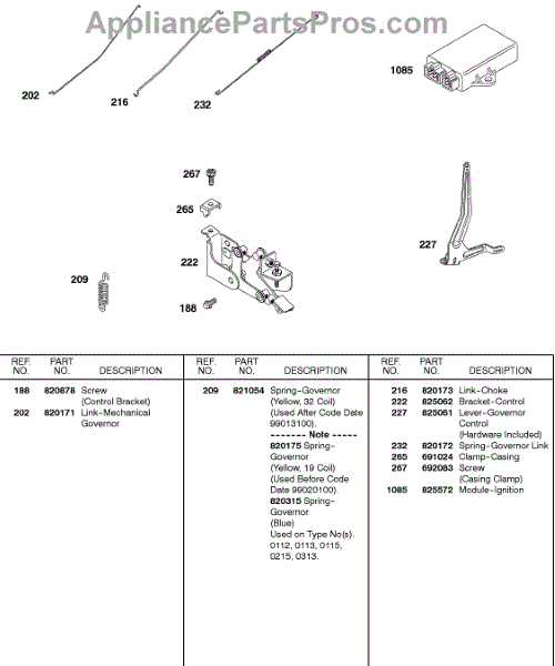 Parts for Briggs & Stratton 580447-0112-A1: Controls, Springs, Ignition Module Parts