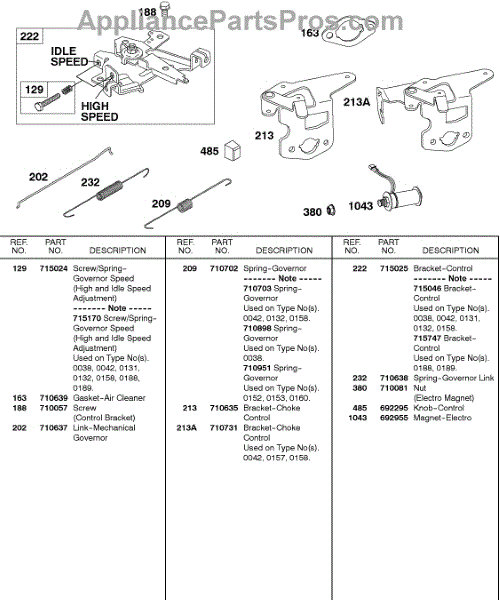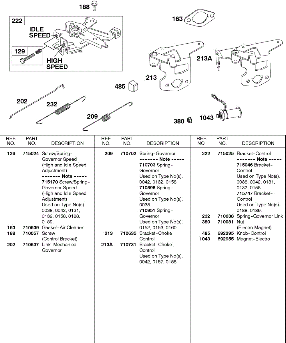 Parts for Briggs & Stratton 138432-0141-E1: Controls, Springs Parts