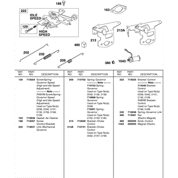 Parts for Briggs & Stratton 138432-0182-E1: Controls, Springs Parts
