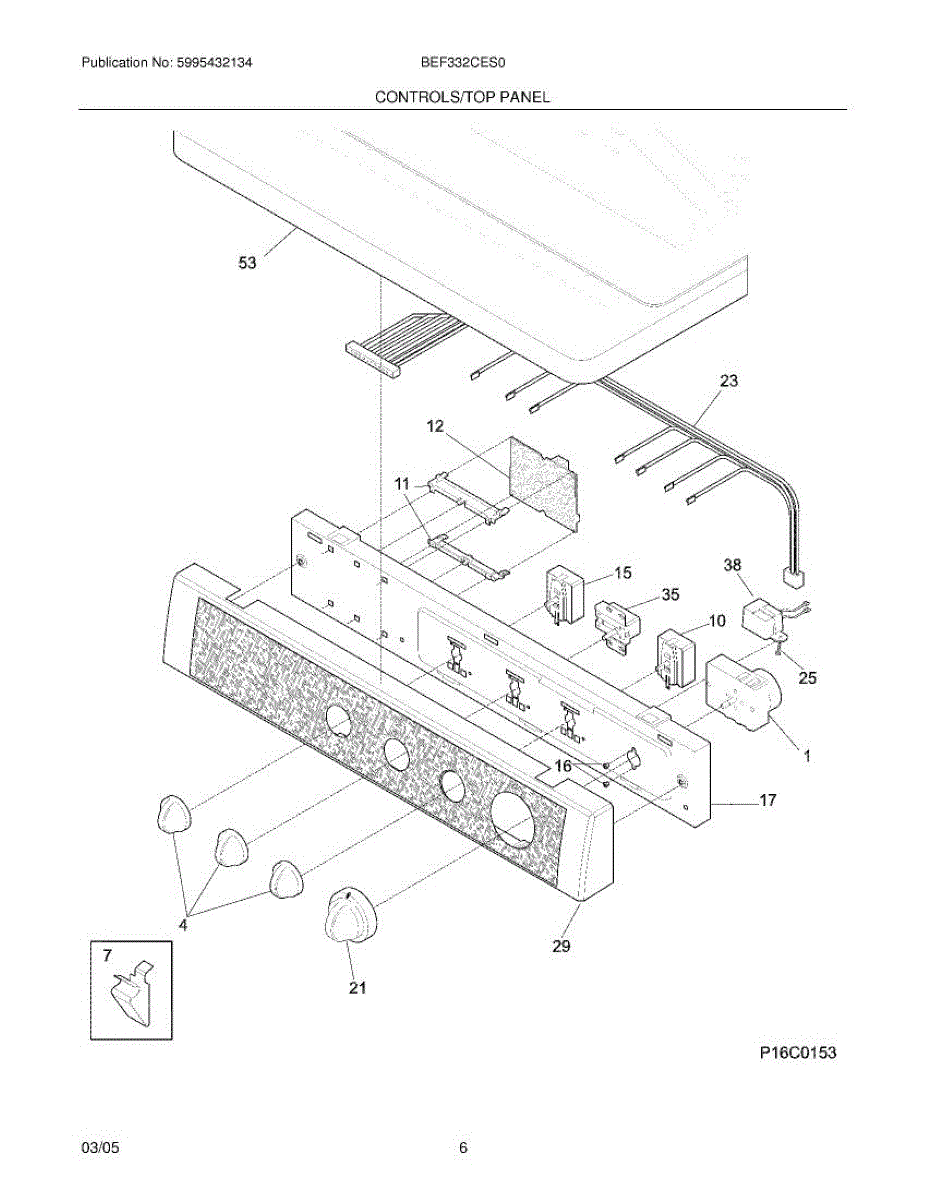 Parts for Crosley BEF332CES0: 07 - Controls / Top Panel Parts