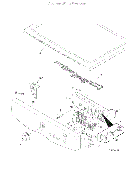 This electronic control board manages the appliance's cycles, timing, and key functions. Replacing a failed board can restore reliable operation when the machine won't start, won't advance, or behaves erratically.