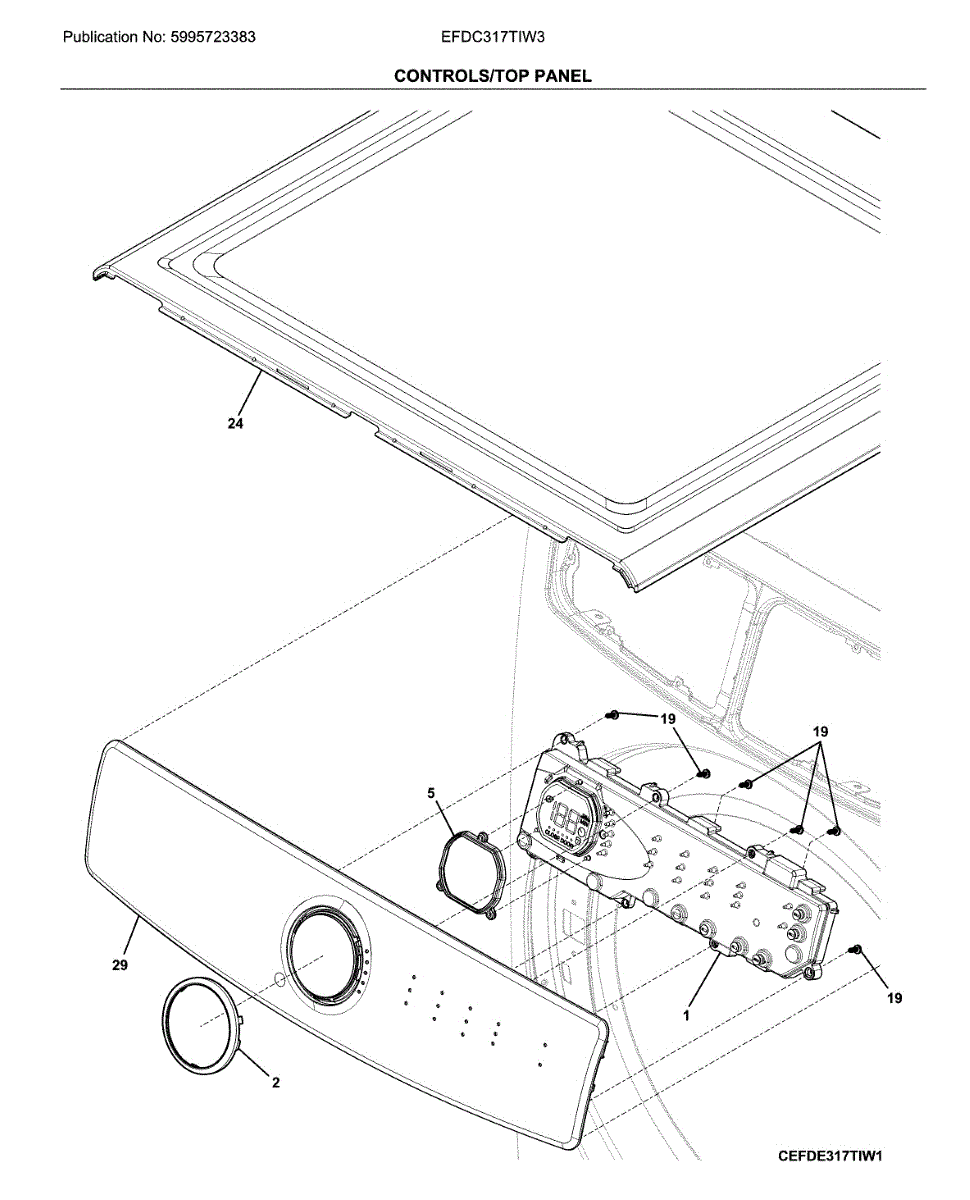 Parts for Electrolux EFDC317TIW3: Controls / Top Panel Parts