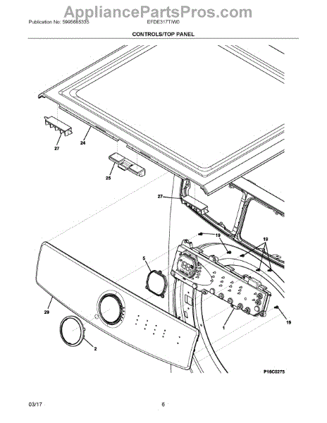 Parts for Electrolux EFDE317TIW0: 04 - Controls / Top Panel Parts