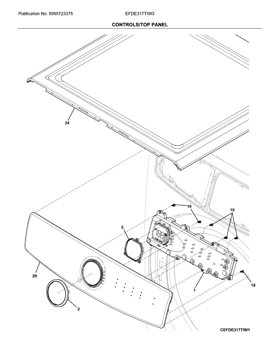 White top panel for dryers. Replaces cracked, dented, or discolored exterior cover. Restores appearance and protects internal components.