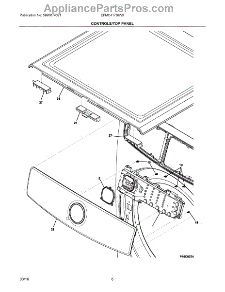 White top panel for dryers. Replaces cracked, dented, or discolored exterior cover. Restores appearance and protects internal components.