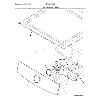 The User Control and Display Board is an OEM replacement part for Frigidaire electric dryers. This electronic board centrally controls and monitors dryer functions while displaying cycle status and options on the user interface panel.