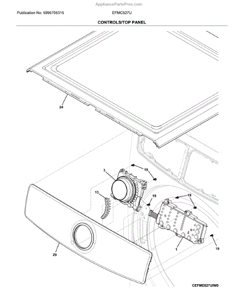 Parts for Electrolux EFMC527UIW0: Controls / Top Panel Parts