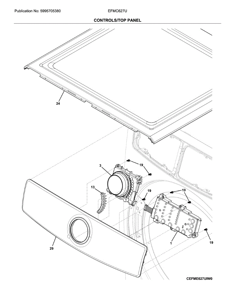 White top panel for dryers. Replaces cracked, dented, or discolored exterior cover. Restores appearance and protects internal components.