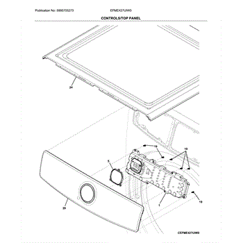The User Control and Display Board is an OEM replacement part for Frigidaire electric dryers. This electronic board centrally controls and monitors dryer functions while displaying cycle status and options on the user interface panel.