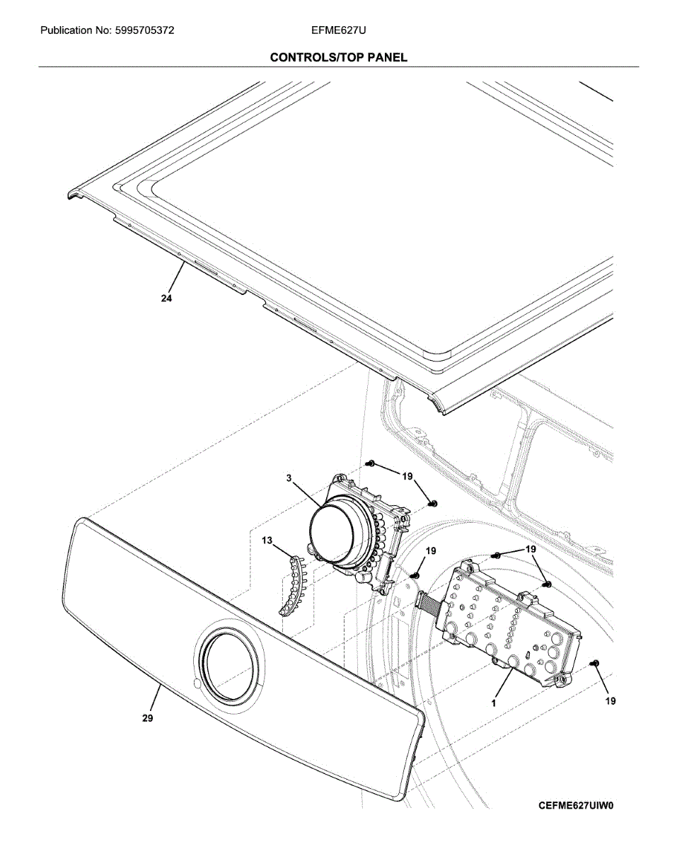 White top panel for dryers. Replaces cracked, dented, or discolored exterior cover. Restores appearance and protects internal components.