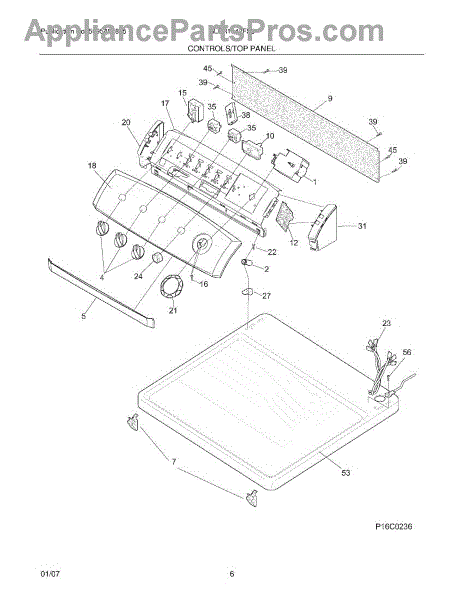 Parts for Frigidaire GLER1042FS0: 07 - Controls / Top Panel Parts