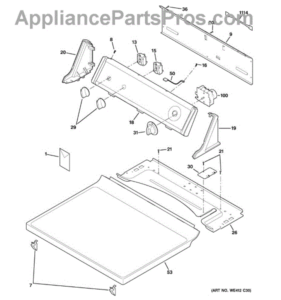 Parts for Ge DBL333EB6WW: 01 - Controls & Top Panel Parts