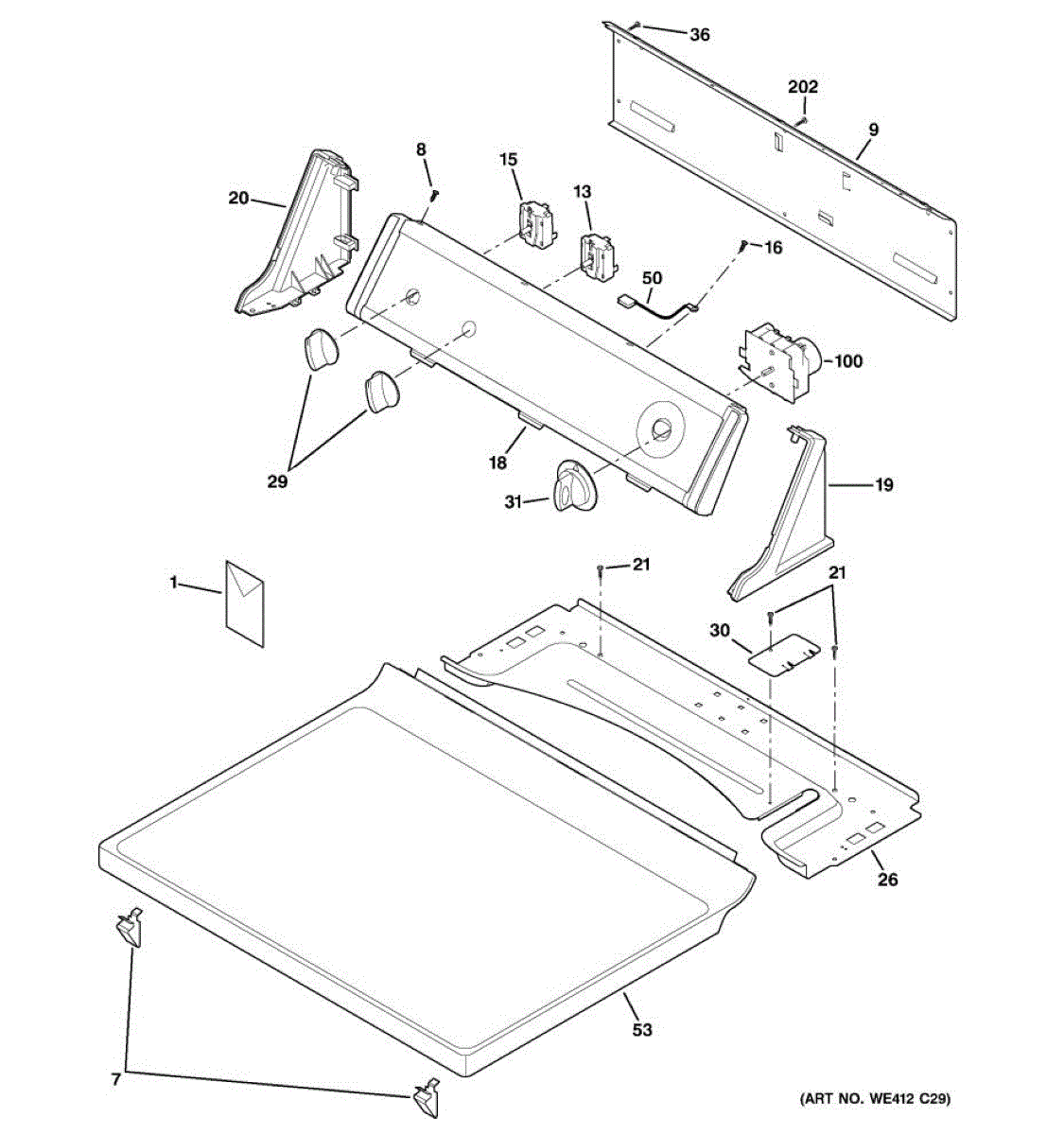 Parts for Ge DBL333GB8WW: 01 - Controls & Top Panel Parts