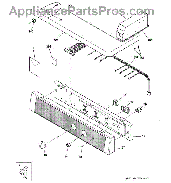 A direct-fit control panel assembly that restores the user interface and front trim for compatible GE appliances, providing clean appearance and reliable access to controls and display elements. What it does