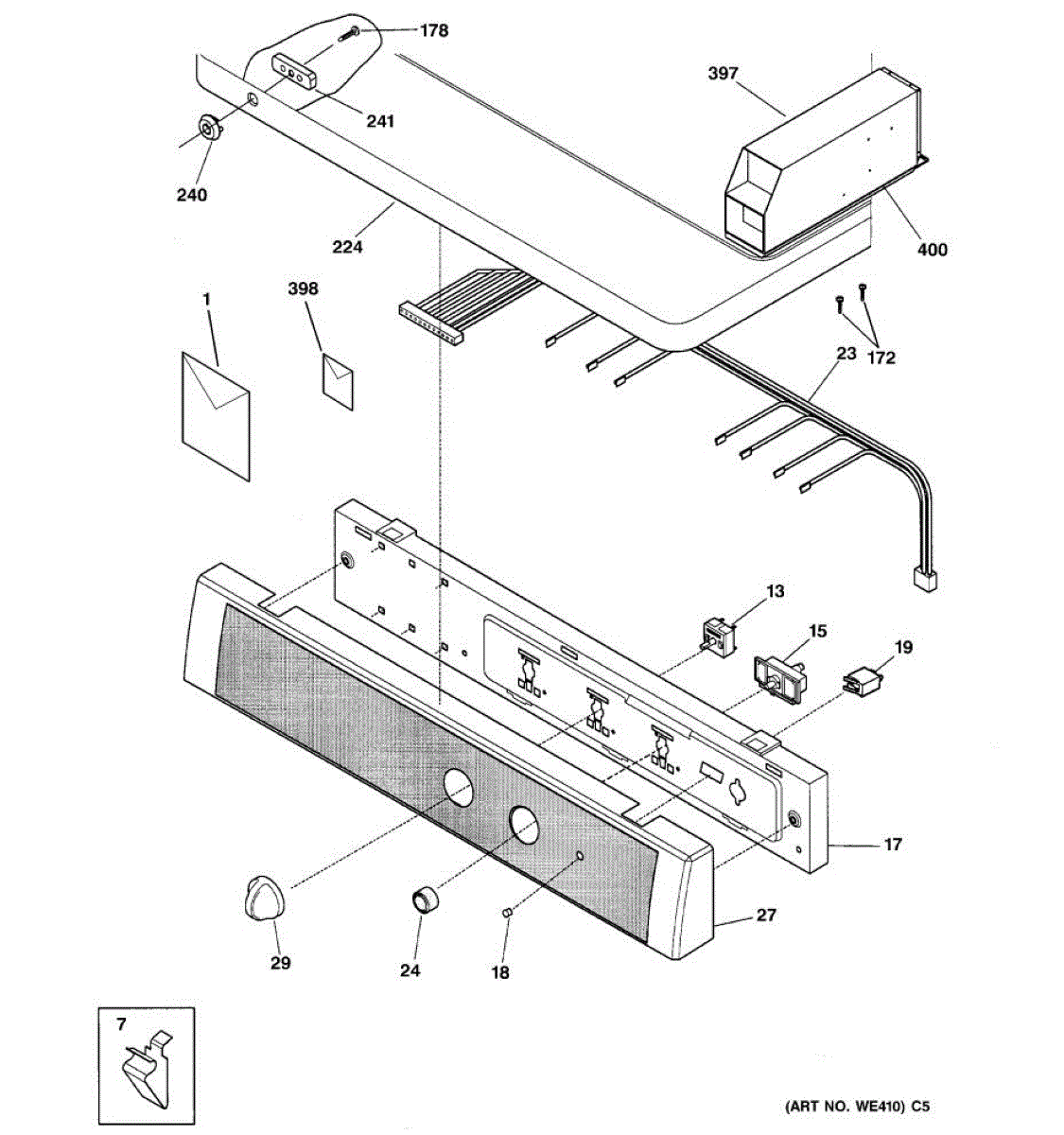 A direct-fit control panel assembly that restores the user interface and front trim for compatible GE appliances, providing clean appearance and reliable access to controls and display elements. What it does