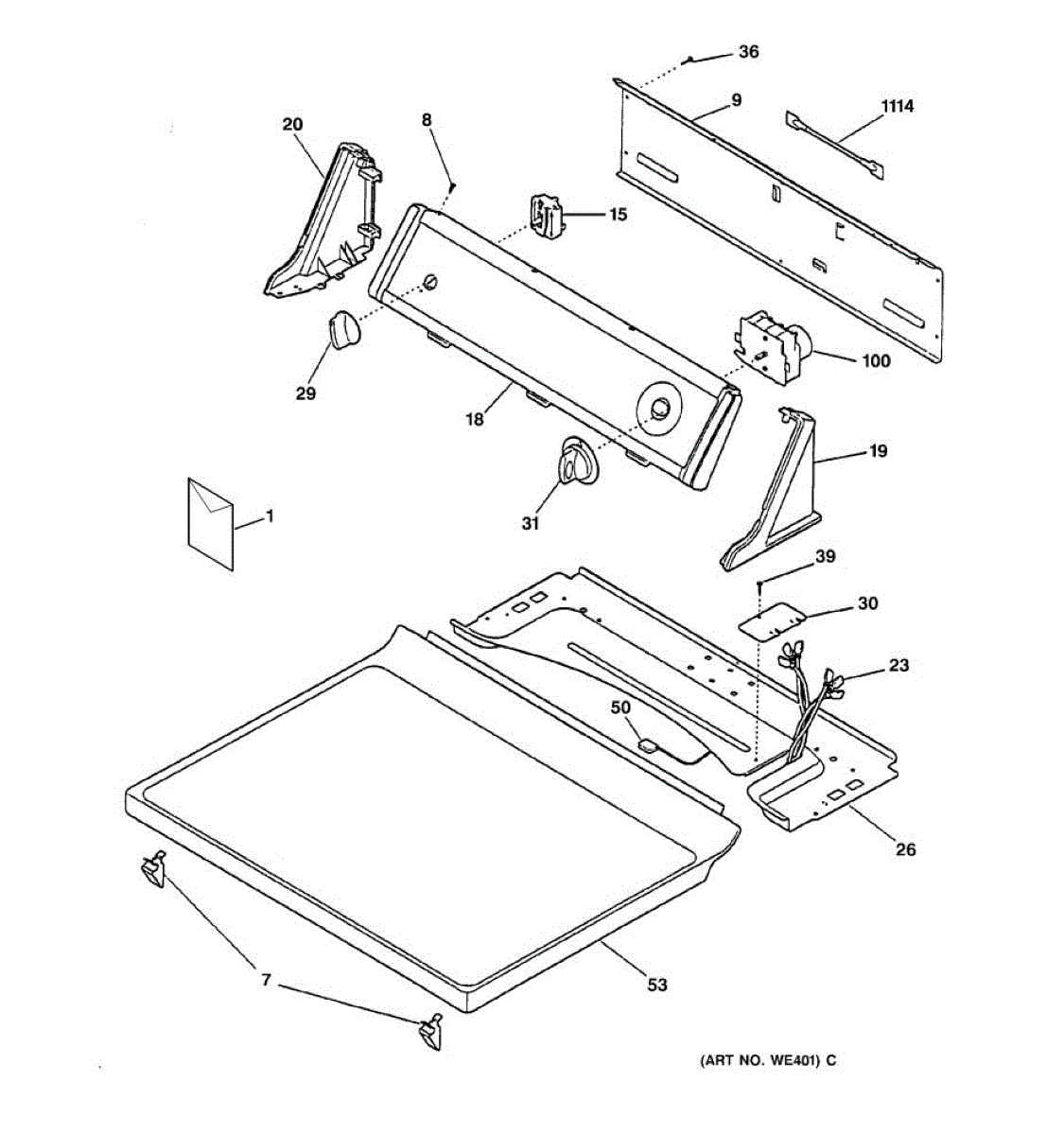 Control knob and clip assembly for dryer or washer. Attaches to control shaft to set cycles and settings. Replace if cracked, broken, or missing.