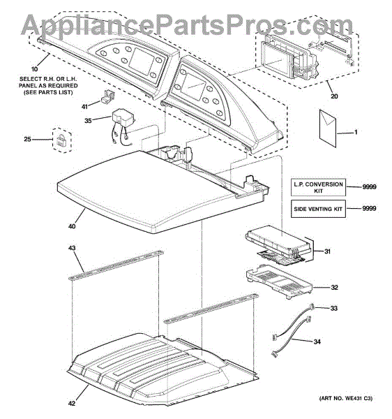 This control panel assembly replaces a damaged or worn right-side console section to restore button access and the front-facing control surface. It provides the visible panel and button openings so controls operate and look correct. What it does: