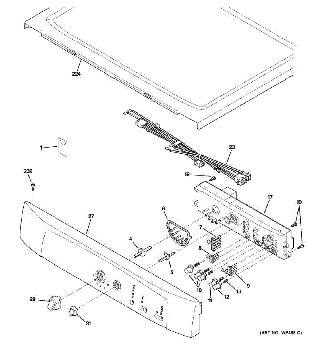 Wire harness that connects the dryer control panel to the electronic control board. Replace if wires are damaged, connectors are broken, or harness is worn.