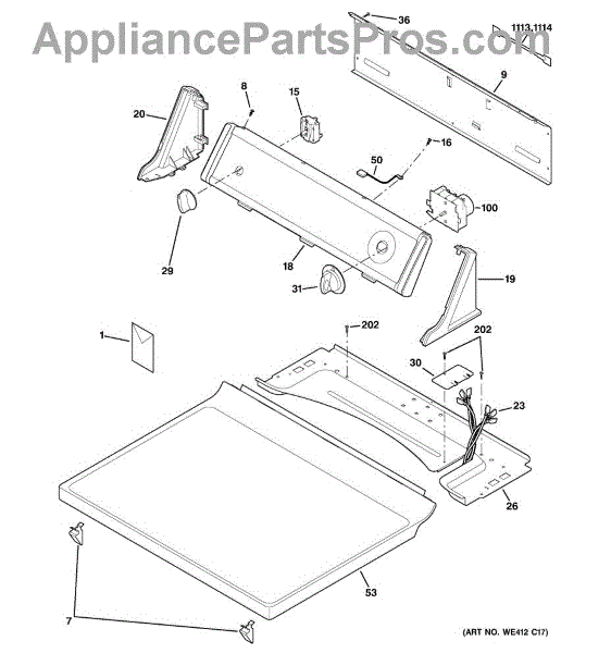 Parts for Ge DVL223EB1WW: 01 - Controls & Top Panel Parts