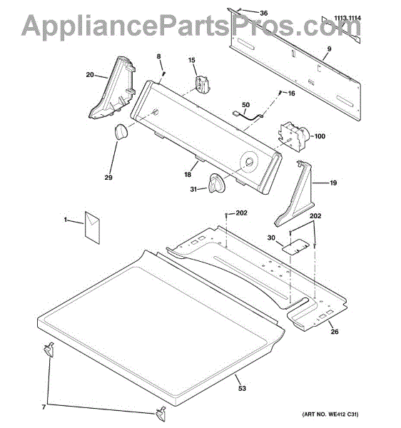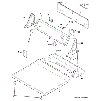 Parts for Ge DVL223EB6WW: 01 - Controls & Top Panel Parts