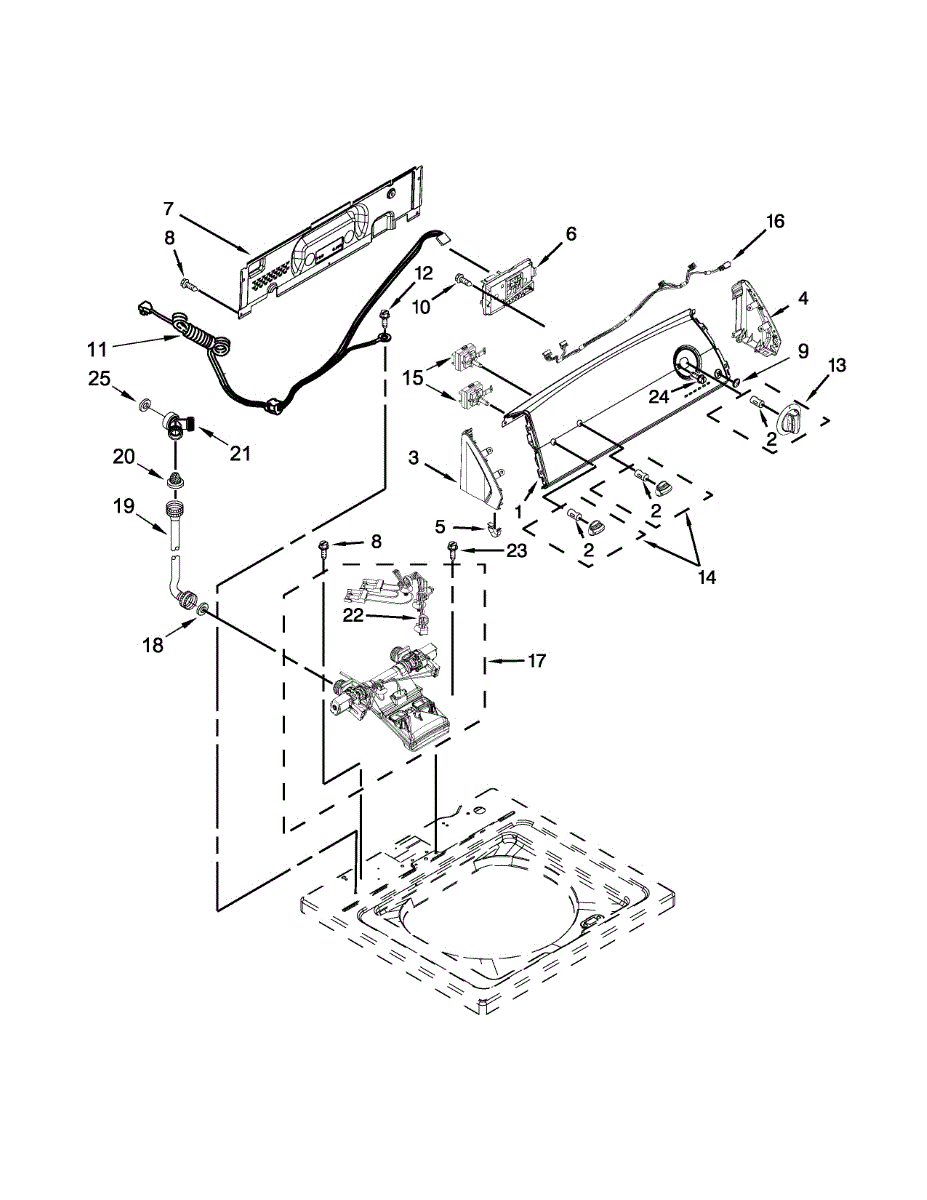The Console Clip is an OEM part compatible with Whirlpool dryers. This clip secures the control console assembly to the top panel, ensuring it is firmly mounted during operation. Properly functioning clips are necessary to maintain the correct alignment of controls and prevent detachment.