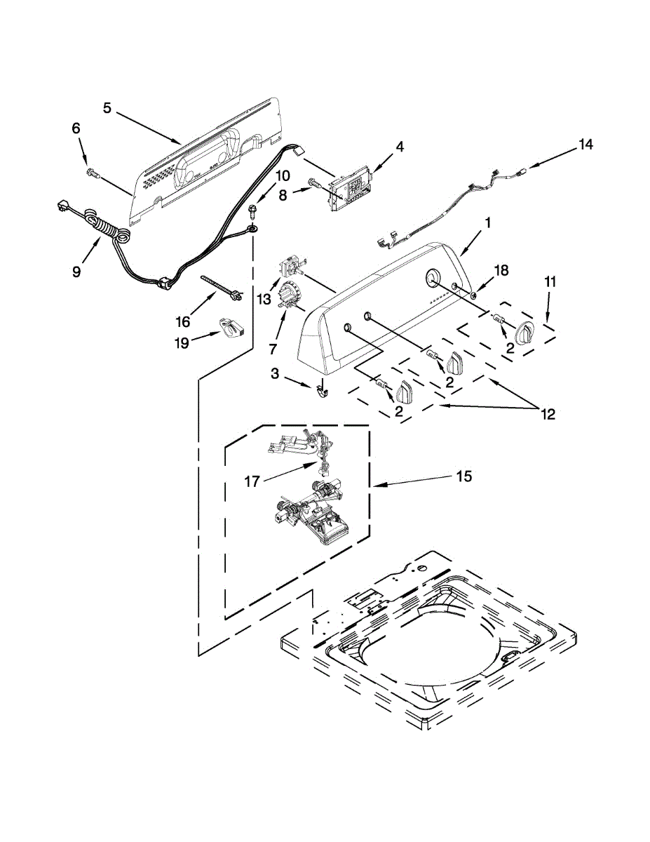 The Console Clip is an OEM part compatible with Whirlpool dryers. This clip secures the control console assembly to the top panel, ensuring it is firmly mounted during operation. Properly functioning clips are necessary to maintain the correct alignment of controls and prevent detachment.