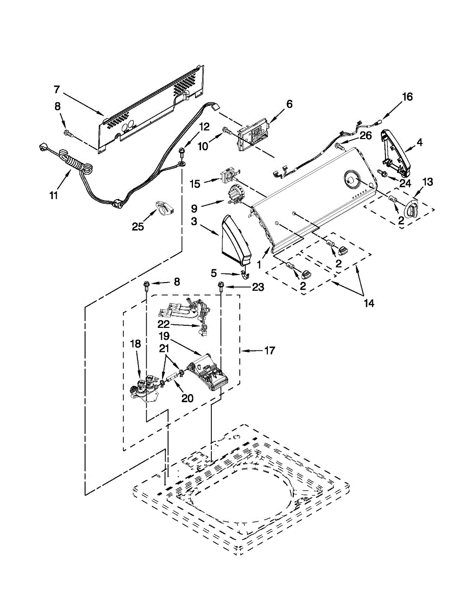 This control panel finishing assembly replaces the exterior console trim that surrounds the appliance controls, restoring a finished look and providing the mounting surface for knobs and buttons. It helps protect internal control components while improving appearance. What it does: