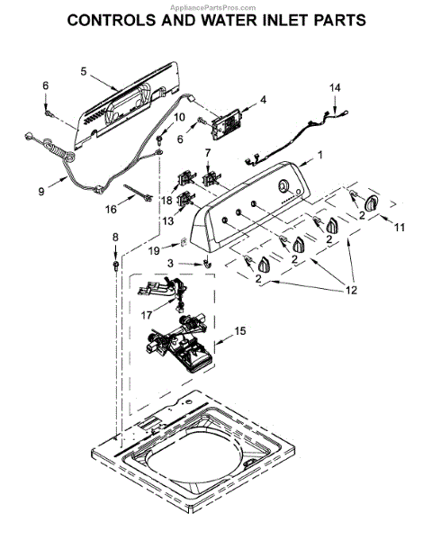 This console is the exterior control panel that houses the user buttons, knobs and display so you can operate your appliance and select cycles. It restores a clean, functional front interface for normal use and control. What it does