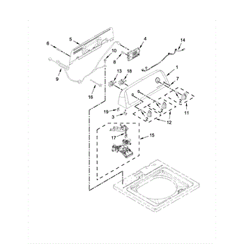 The Console Clip is an OEM part compatible with Whirlpool dryers. This clip secures the control console assembly to the top panel, ensuring it is firmly mounted during operation. Properly functioning clips are necessary to maintain the correct alignment of controls and prevent detachment.
