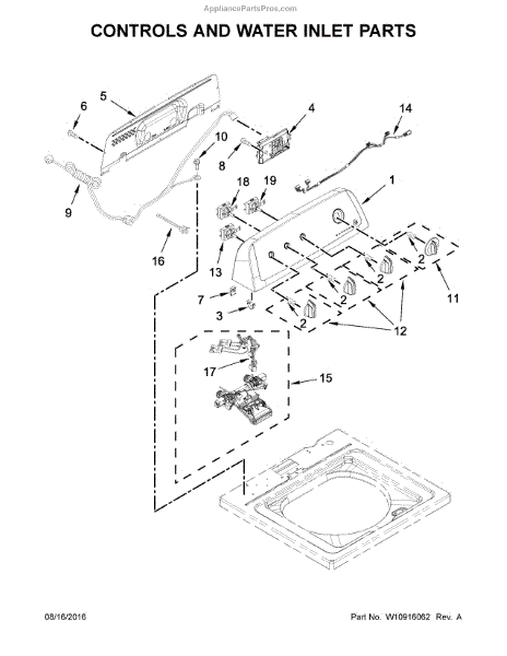 This main electronic control board manages and coordinates appliance functions so cycles, timers and user commands run correctly. Replacing a failed control restores reliable operation and control responsiveness. What it does: