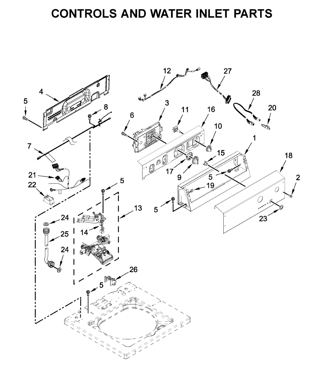 This upper wiring harness connects the washer's control panel and sensors to the main electronics, restoring reliable communication and power to the control area. It's used when controls, display, or related functions lose power or responsiveness. What it does: