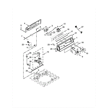 This control panel is the console assembly that houses the oven/range user controls and display, restoring responsive button input and clear status feedback for normal operation. It replaces a worn, cracked, or unresponsive console to return reliable control. What it does:
