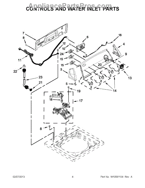 Parts for Whirlpool 7MWTW1602BM0: 02 - Controls And Water Inlet Parts