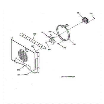 This convection fan assembly circulates heated air inside the oven cavity for more even baking and roasting. Replacing a worn or noisy fan restores proper airflow and helps maintain stable temperatures during convection cooking.