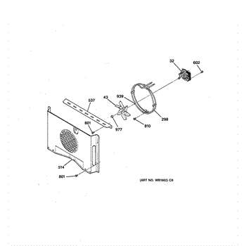 This convection fan assembly circulates heated air inside the oven cavity for more even baking and roasting. Replacing a worn or noisy fan restores proper airflow and helps maintain stable temperatures during convection cooking.
