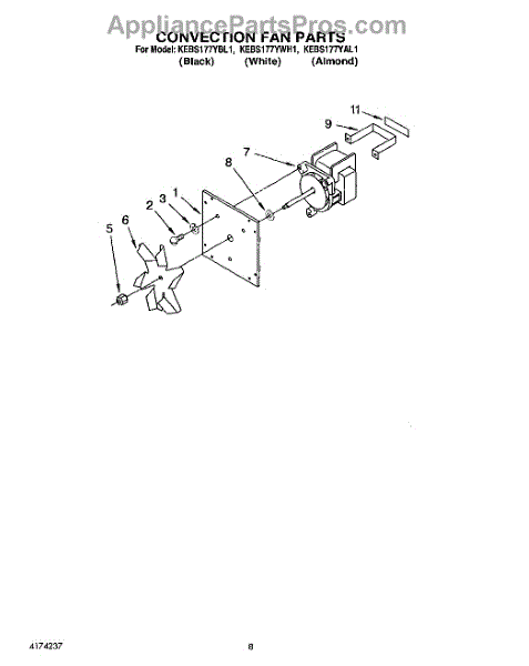 Parts for Kitchenaid KEBS177YAL1: 07 - Convection Fan Parts
