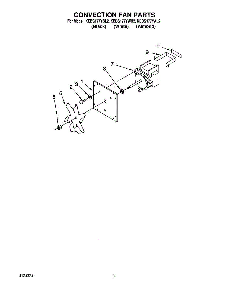 Parts for Kitchenaid KEBS177YBL2: 06 - Convection Fan Parts